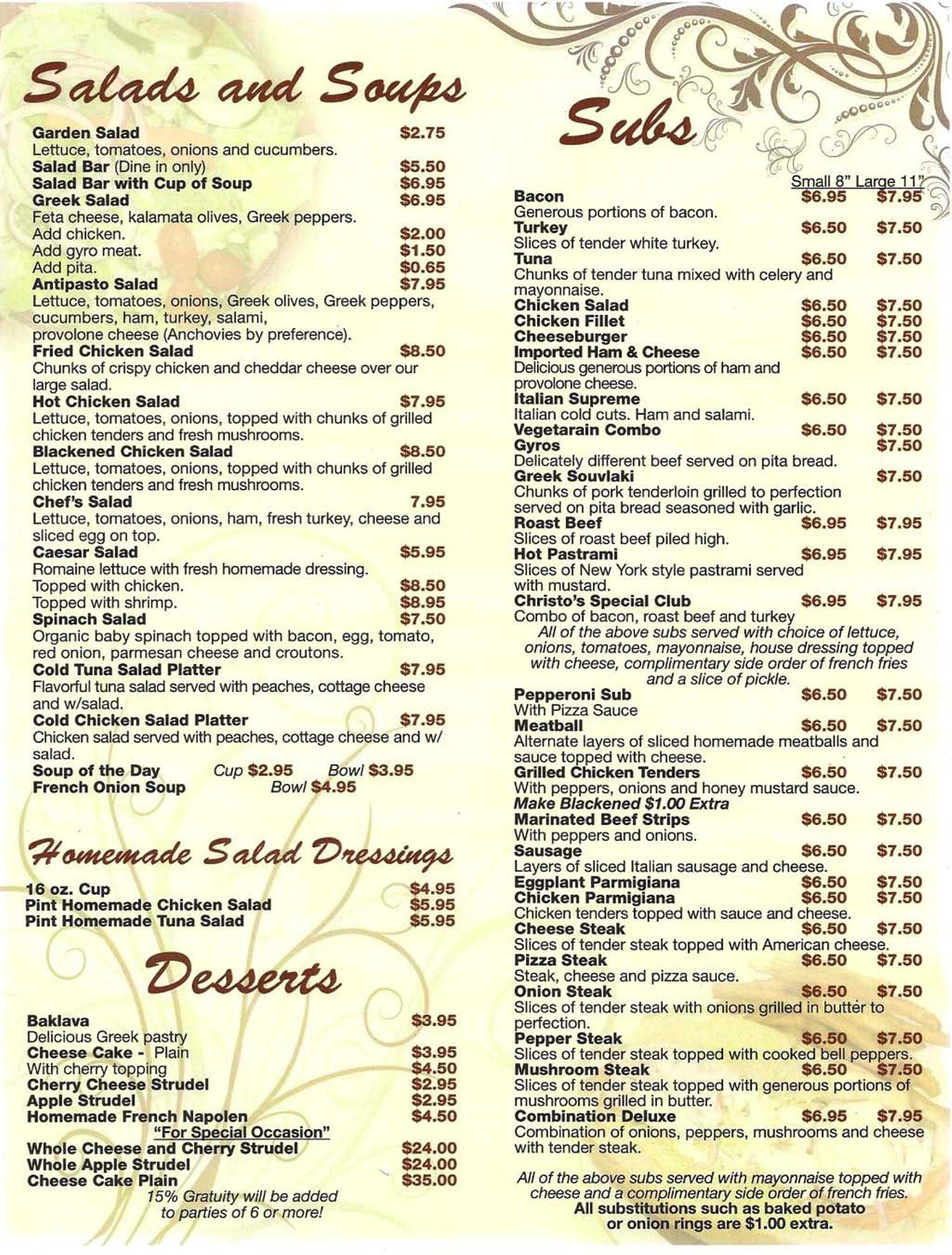 From stuffed bell peppers to stuffed chicken breast Florentine, you'll find a Mediterranean dish to love at Christo's Family Restaurant. You'll love our homemade tzatziki sauce on our gyro dinner and souvlaki combination dinner.